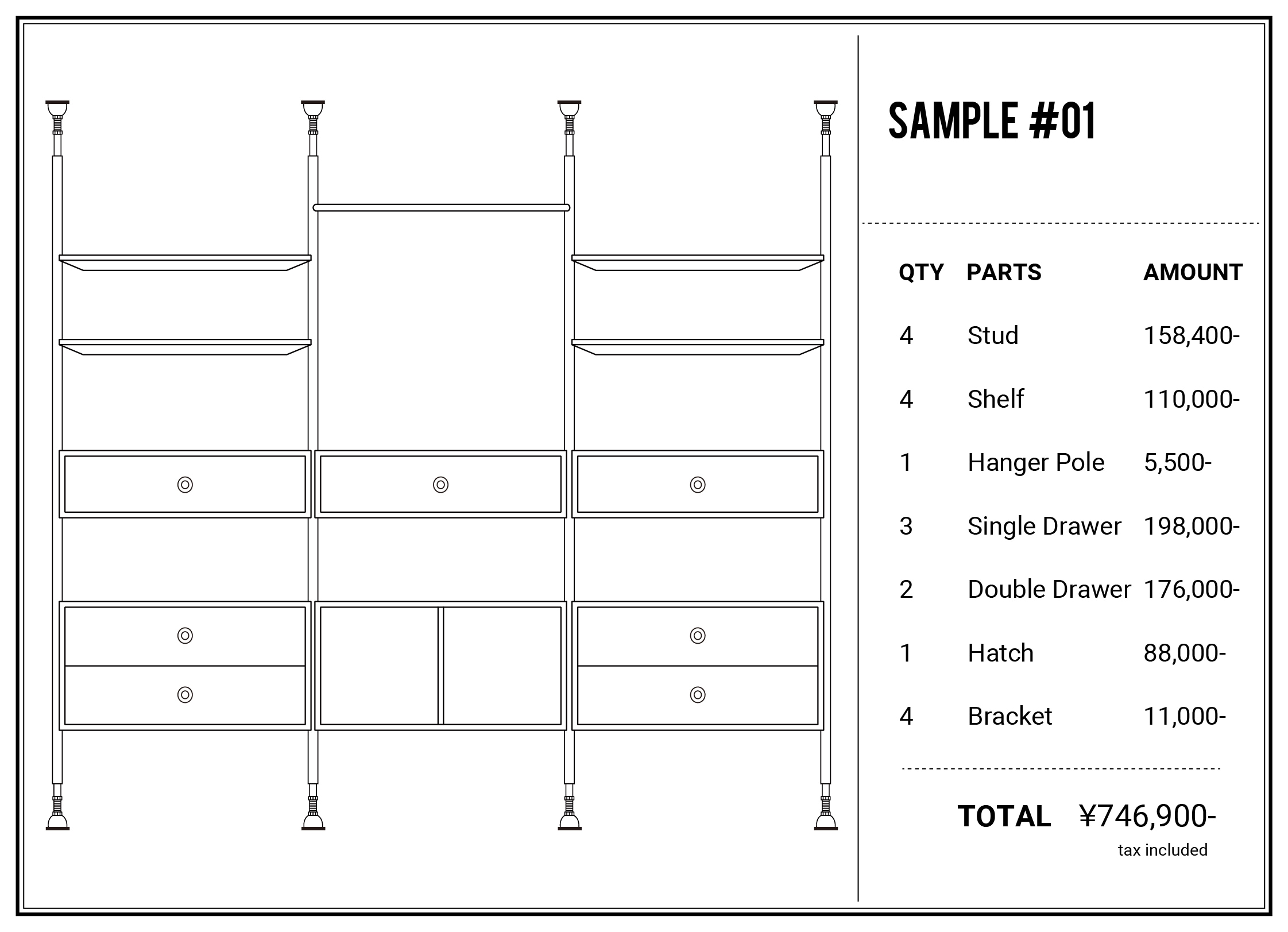 SS901 / 39,600yen W55 D32 H2150 + アジャスター ※対応天井高:2270~2470mm